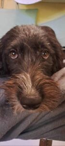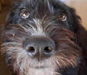Akela is super sweet and gentle – such a gentle dog, loving with people, dogs and cats. She was found abandoned with her two sisters and has been living in her rescuer’s home since she was found.