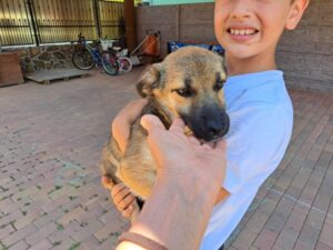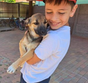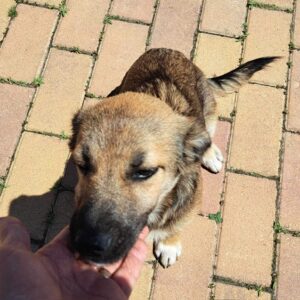 Alina is one of three puppies who were found abandoned and is now living in a foster home where there are two children. She is a typical sweet puppy who likes to play and be cuddled.