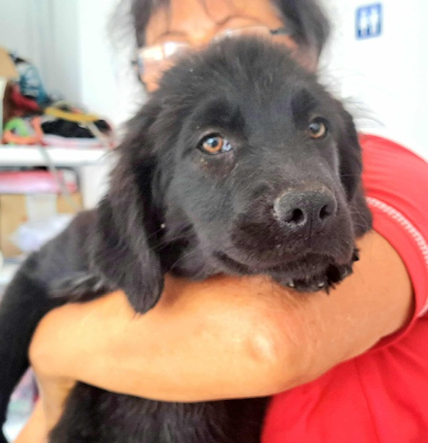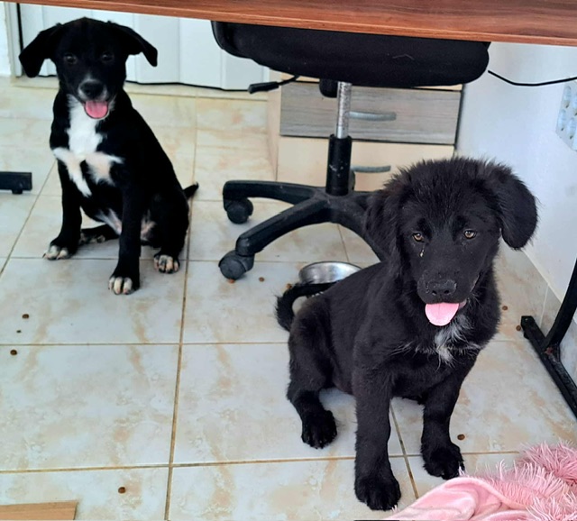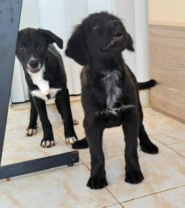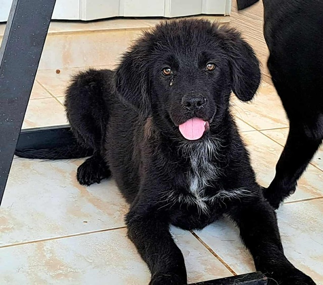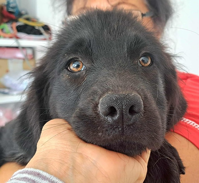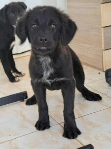 Ania and her two sisters were abandoned under some bushes in the city centre. Someone found them and called the shelter. They are very sweet typical playful, friendly puppies who have been vet checked and are ready to find homes. Ania seems a little furrier than her sisters and is pretty much all black except for some cute freckles down her front.