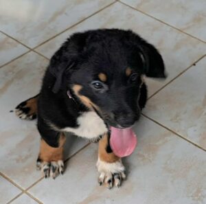 Attis’s mother was found abandoned, already pregnant. She gave birth, at the shelter to four puppies. Although we don’t know the size of the father, mum is small size (only 33cm) so we expect the puppies to remain fairly small. Attis is a sweet-natured, playful, friendly tricoloured boy.