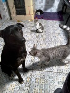 Bali lived around a renovation site where construction workers fed her. When the crew left, she was abandoned. Her rescuers found no owners so they took her into their home.