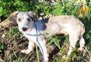 Bono was found at an abandoned farm, quite scared and difficult to catch. His fur was badly matted and he had to be shaved. Now, he has gained some confidence and is only a little shy. However, we are looking for an adopter who has had some previous experience of a nervous dog. Bono will turn into a beautiful dog, given the time and space to grow and experience new things at his own pace.