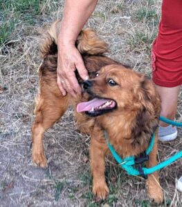 This little sweetie is Britta who was found abandoned locally by one of our rescuers on the outskirts of the town. She is a very loving dog who is good with people, other dogs and the cat. It is obvious Britta had had puppies previously but they were nowhere to be found and were probably old enough to leave her.