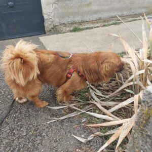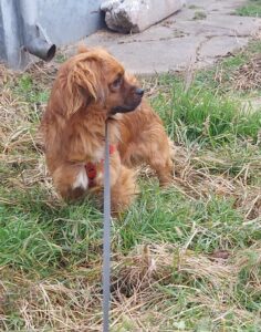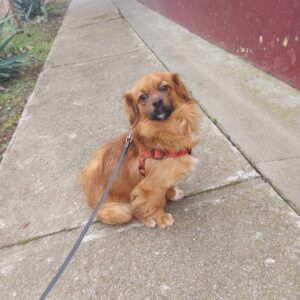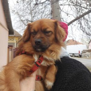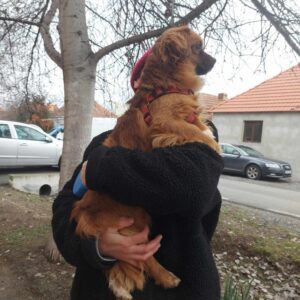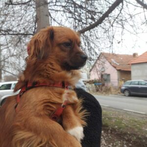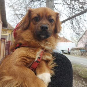Bubi was abandoned on the street of one of our rescuers. After finding him hiding in some bushes they took him in. He is a lap dog – no doubt about it – and absolutely loves cuddles. He can be a bit shy when meeting new people but soon warms up. Altogether is currently living in the house with a large sized cat, a 4 month old puppy, and 3 male dogs. He is particularly playful and friendly with the puppy and the cat. He loves to be around people and doesn’t like being left alone for long so we recommend a family who spend plenty of time at home and will work on his separation anxiety. He would be happy with another dog or cat to keep him company and definitely needs a house with a garden as he loves to run around outside.
