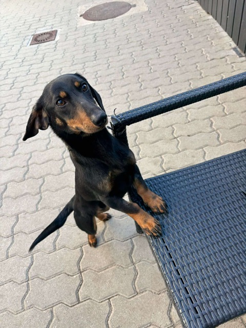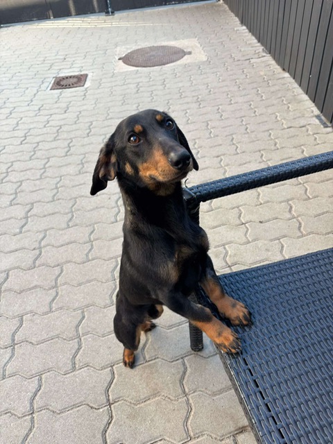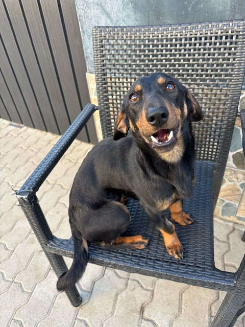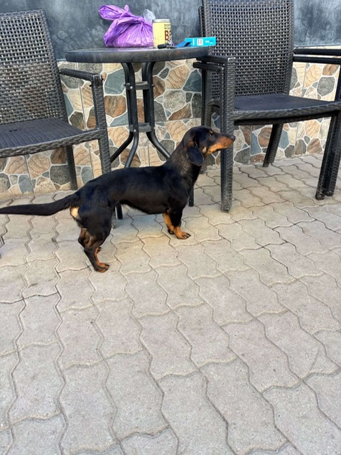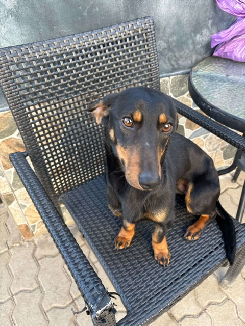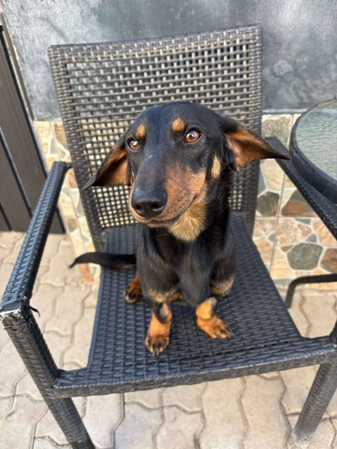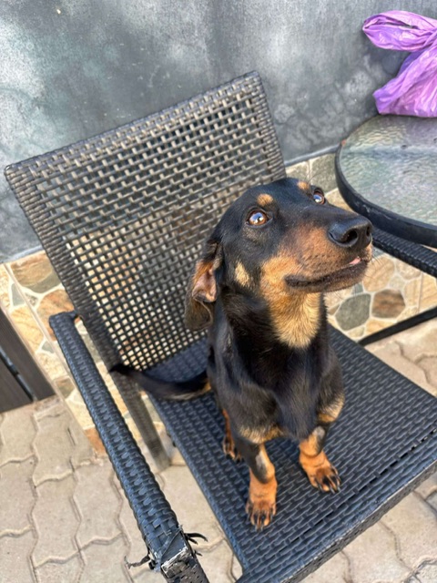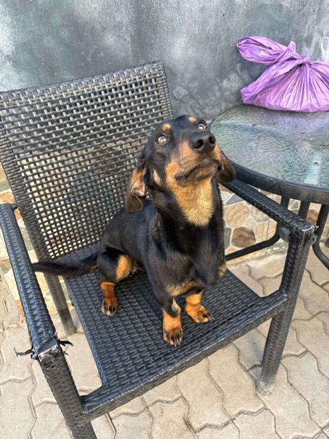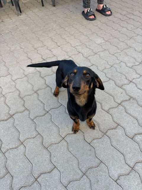 Clarence, a small dog who looks like a dachshund mix, was abandoned by his family at a local dog kennels. Very well socialised, he loves people, dogs and cats. He walks nicely on a lead and is altogether a really sweet natured boy.