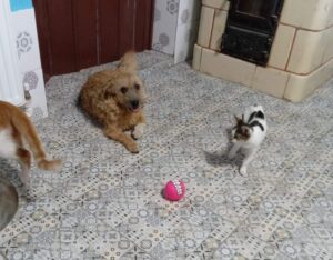 What a poppet! Coral was rescued from a public shelter and is now living safely in a family home with other dogs and cats. She is a little cutie who is playful, sweet-natured, and friendly with everyone.