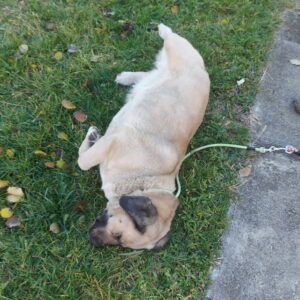 Meet Daisy — as loving as she is big! This gentle girl’s absolute favourite thing in the world is belly rubs. In fact, she’s been known to lie down halfway through a walk just to request one!