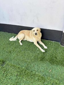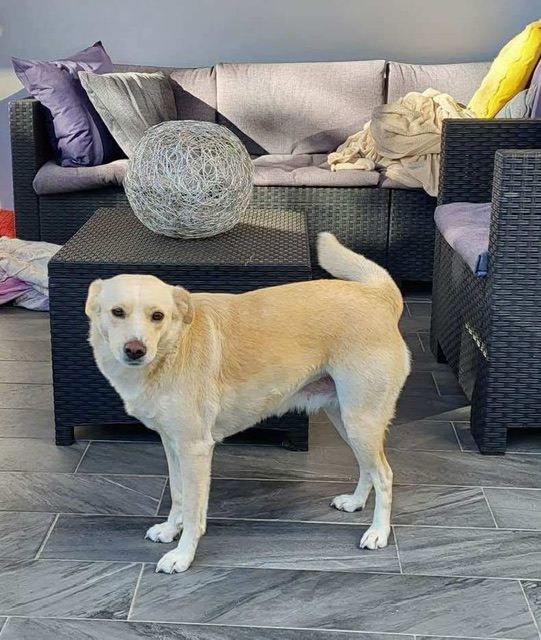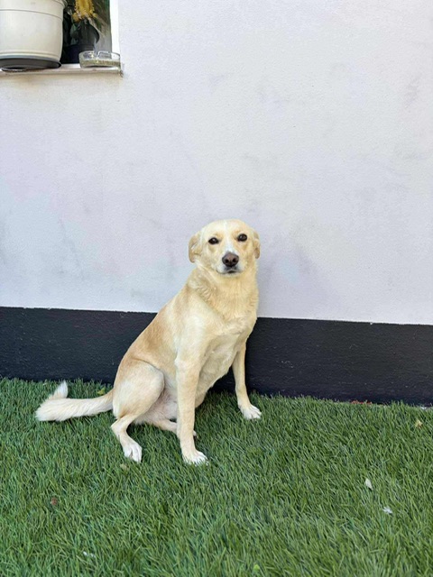Delia is a really special dog, very calm and loving – possibly a lab mix. She is good with other dogs, living with two at the moment, but genuinely prefers humans. She was found on the streets around some apartments buildings and everyone loved her but she was in danger of being taken by the dog catchers so one of our rescuers took her in. She is so gentle and well mannered that we feel she will be fine with people of all ages and can be cat tested if needed.