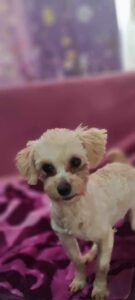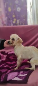 Dominic was found abandoned with another dog in a terrible messy, matted state. After being clipped and groomed, he is now looking gorgeous. This boy is adorable – extremely friendly and well mannered. He is currently living in a foster home with other dogs, puppies, cats and children and gets on well with all. He is the slightly smaller of the two – the vet doesn’t think they are siblings. Dominic looks as if he could have bichon, poodle or similar in his background. No issues with this little boy, he’s a real cutie.