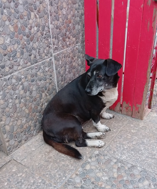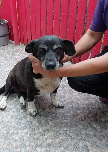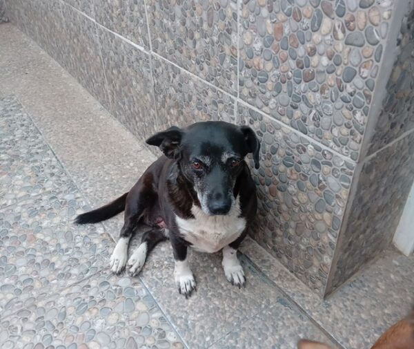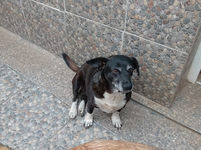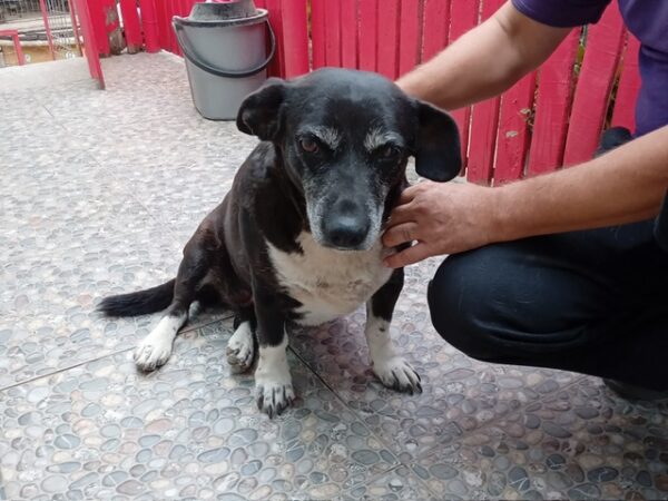 Donut lived for years at a truck depot where trucks went for maintenance. Her life wasn’t all that bad, she was fed by everybody, one of the maintenance guys even took her to the vet and had her neutered. A few months ago,  a change happened….the man who mainly cared for her had to relocate with work and family and he couldn’t take her with him. He asked his colleagues to look after her but their commitment didn’t last long so the man called one of our rescuers and asked them to find her a family home. At nine years of age she is a golden oldie but she is still an active, lively, funny, friendly girl who is used to people, especially men,  as she met many at the garage. She loves her food and snacks so is a bit overweight at the moment. Despite her age, she loves a run in the garden and playing with the younger dogs in her current foster home.