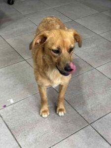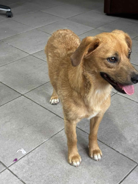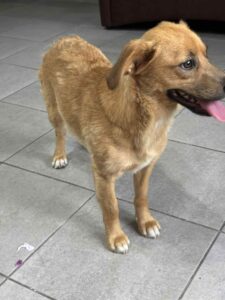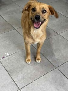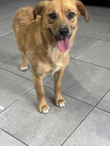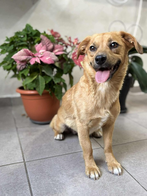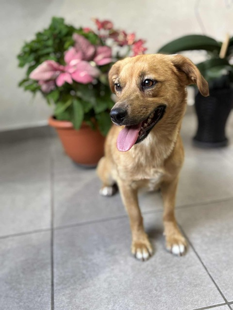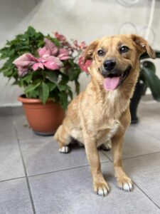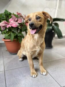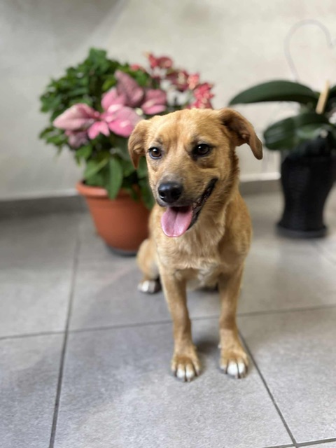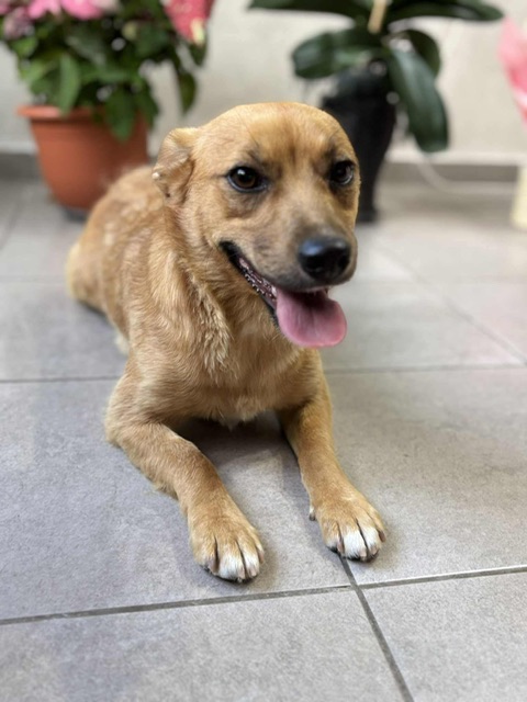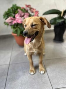 Foxy showed up one day outside her foster’s door and would not leave – she probably could hear the other dogs playing in the garden. Her foster let her in and she stayed. Foxy is a little sweetheart who gets along with all the dogs and is very friendly and affectionate with people.