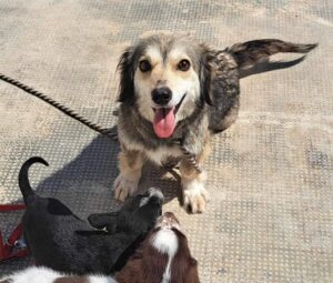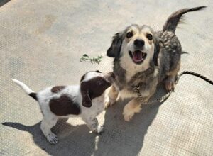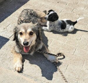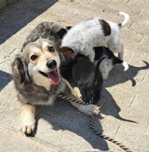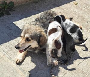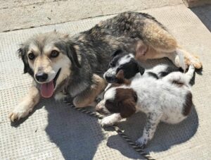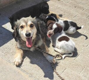 Hellen was found on an abandoned farm with her three puppies. She has been a super mum but her puppies are old enough to find homes of their own so we are looking for a home for Hellen. Hellen is an absolutely delightful, friendly playful girl who is good with adults, children and other dogs and can be cat tested.