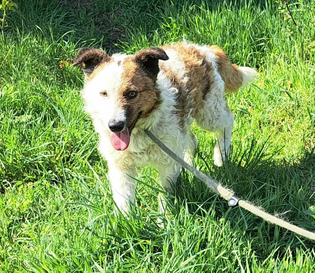 Hipo loves people and craves their attention. He’s a bit timid around energetic dogs, so his ideal home would be calm and peaceful where he could live either as an only dog or with another quiet, gentle dog.