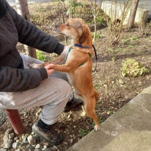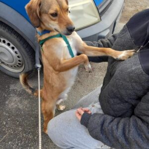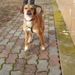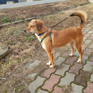 Indi gets along well with both male and female dogs . He is playful and energetic and very curious about everything during his walks. Although he can be a little shy at first, he soon warms up when meeting new people, is friendly and loves being cuddled. It’s a no to cats for Indi though and he will need a garden with a good sized fence as he likes to jump.