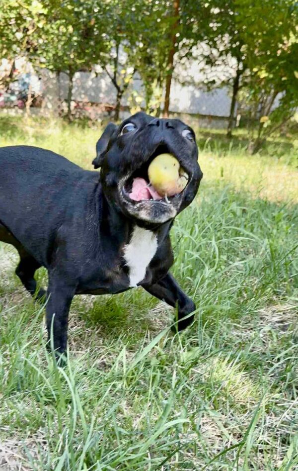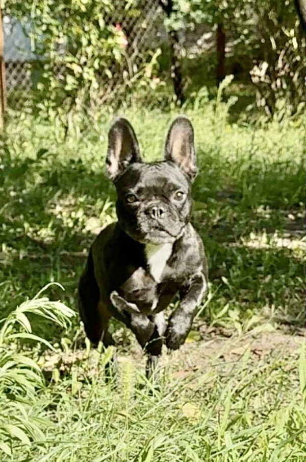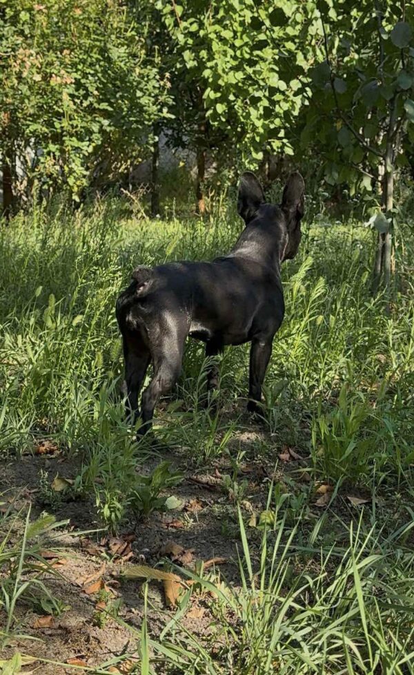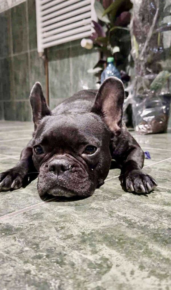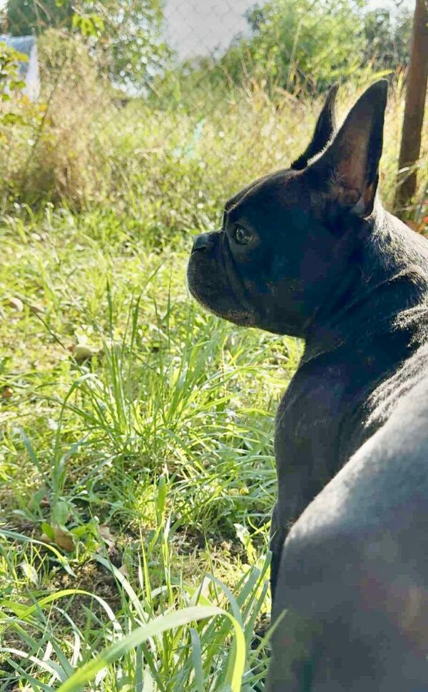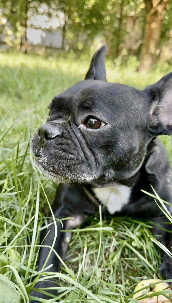 Kima is a dog living with one of our fosters. However, she is overwhelmed by the number of dogs in her foster’s home and has become quite clingy. We feel she would be happier as an only dog or with another friendly dog . Kima is people friendly and very affectionate and we would like to find her a new home as soon as possible. Her favourite toy is a ball and she enjoys her pool in the garden. Kima can be left alone for short amounts of time. She appears to be a French bulldog or cross.
