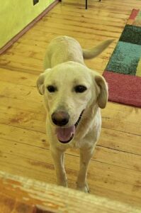 Lola was rescued by one of our local vets and is now in foster. She looks like a labrador mix and has a typical lab personality, extremely lovable and affectionate. People come first but she is good with everyone cats and children included. Not overly energetic, she walks well on her lead and is fine with visitors. Lola would probably enjoy being with another dog but would be ok on her own.