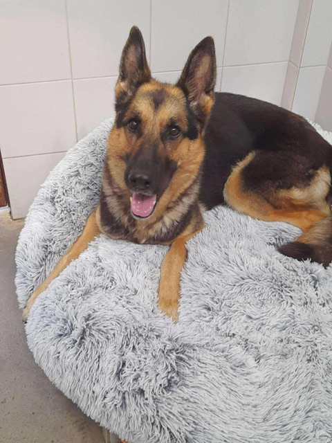 Lory has the most excellent character, she’s gentle, loving and curious, greeting all people calmly and will walk placidly alongside anyone. She loves being brushed and craves the attention of any visitors to the shelter! When lead walking, she is very sociable with other dogs. but we haven’t tested her off leash in the play park yet. Lory was diagnosed with Exocrine Pancreatic Insufficiency (common in German Shepherds) which is now under control. However, potential adopters should be aware that Lori will need to continue on a low fat diet and daily supplementary medication.