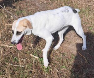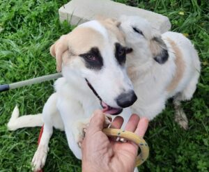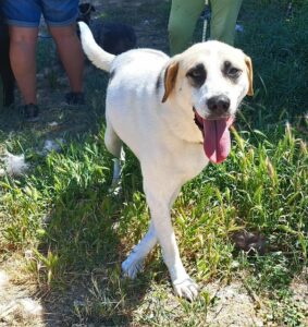 Margret is a sweet, friendly girl whose journey began on a building site, where she and her five siblings were discovered with their mother, tiny and vulnerable, with eyes still closed. Despite being overlooked at the shelter, Margret has grown into a delightful dog with striking eye markings that are sure to capture your attention.
