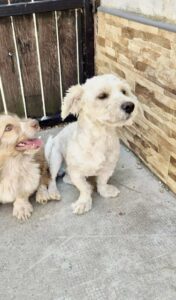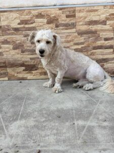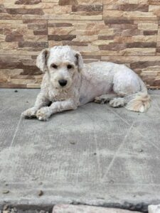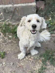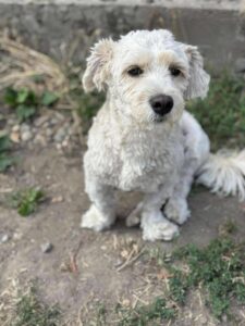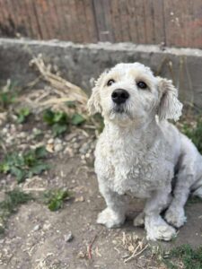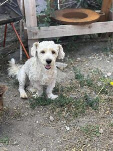 Milo’s owner was arrested and left behind 8 bichons . It was a very sad situation as they had been kept in appalling conditions. Perhaps because of those circumstances, where he had probably not been exposed to visitors, Milo is a bit wary of strangers (though he is selective and is fine with some). He is currently living in a foster home and loves his foster carer. He enjoys playing with the other dogs and is living with cats. Because he is timid we would say no children. In fact, the best home for Milo would be a quiet, calm home where there at not too many visitors. His new adopter should have some experience of owning a dog, be prepared to let Milo take things slowly, not expect too much from him at first and give him plenty of positive reinforcement and slow introductions to new people until he gains confidence.