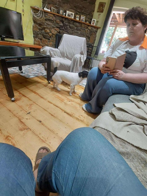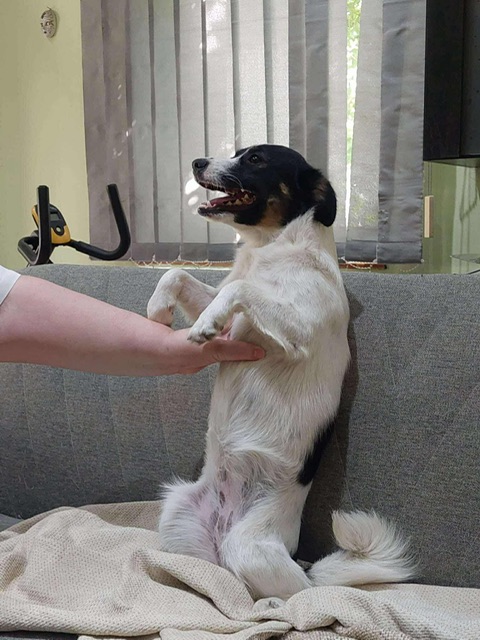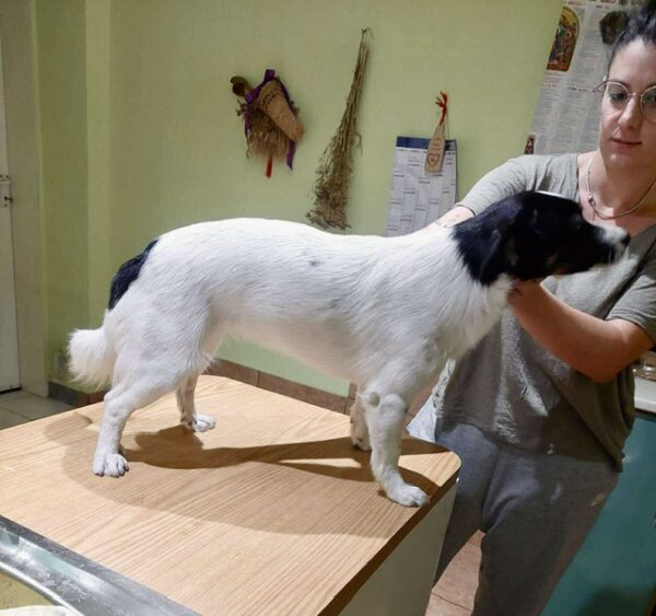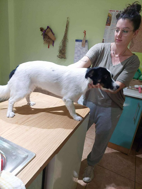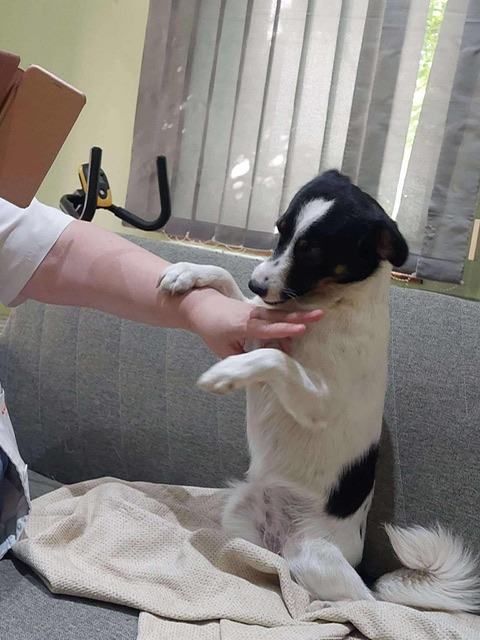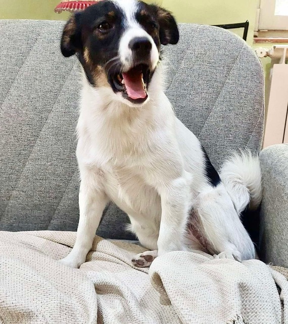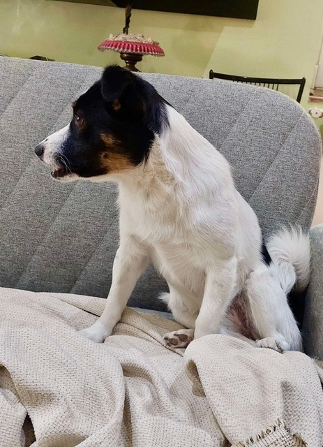Someone abandoned Minnie in front of a friend’s pharmacy in a nearby town. She took her in and noticed that she was limping. After a vet examination it was found that she needed a small surgery. The surgery was a success and we have two medical letters one from her surgeon and one from her regular vet confirming this. Minnie has had two months of recovery time and she is doing fantastic and is ready for adoption. She walks , runs , jumps like new ! Also, she has the greatest personality, loves everyone: dogs , cats , people, visitors (including children) . Currently she is living in foster with a labrador mix and they are great pals, it’s a non-stop play all day long so we think Minnie would enjoy having a dog friend to play with.