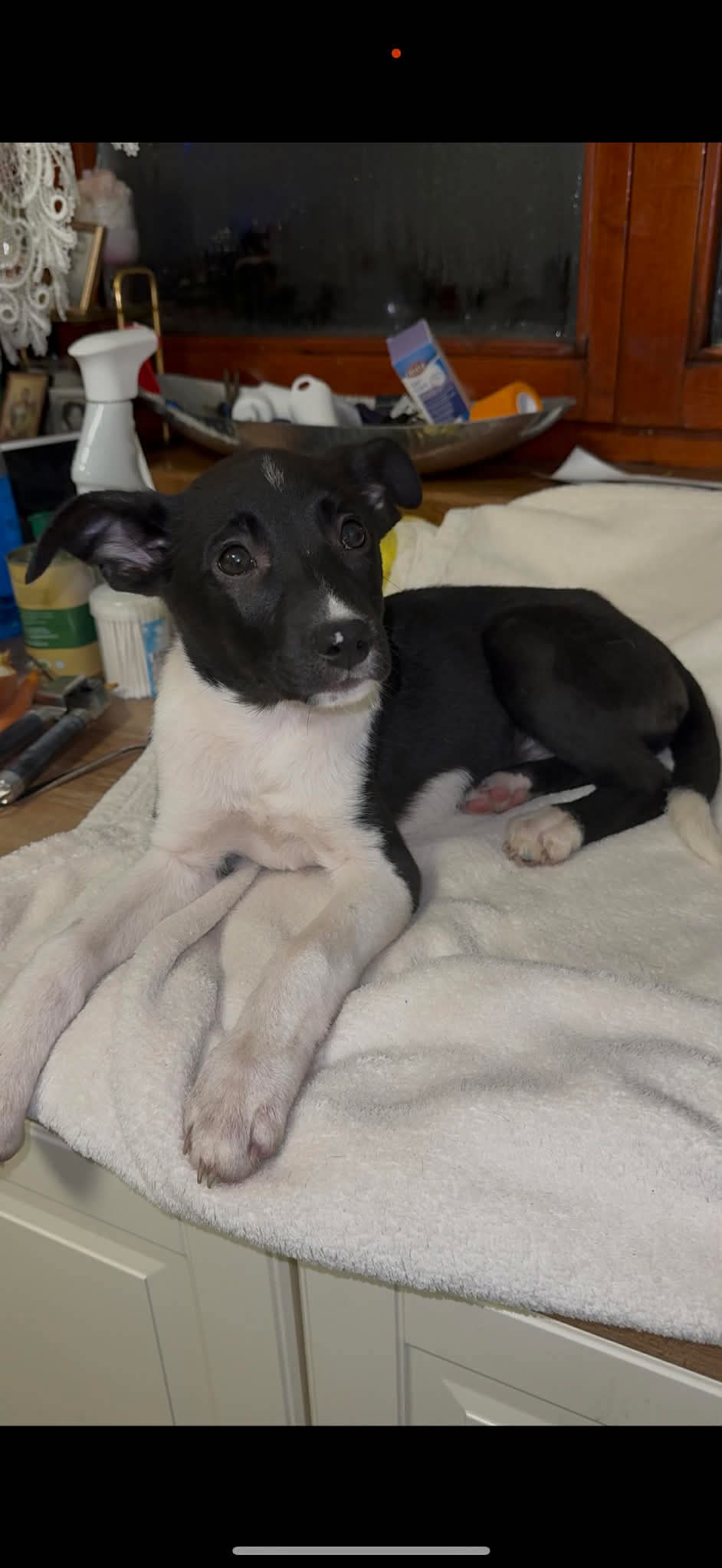 The puppies are growing up in a foster home around older dogs 🐕, who have welcomed them beautifully, and the puppies clearly enjoy their company. Moxie is also good with cats 🐈.