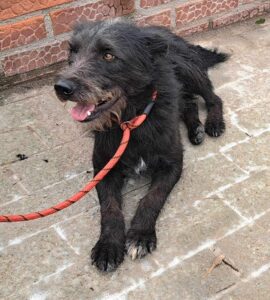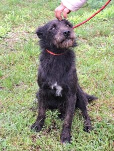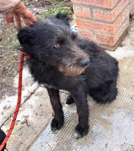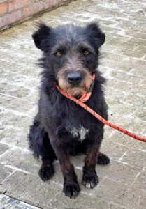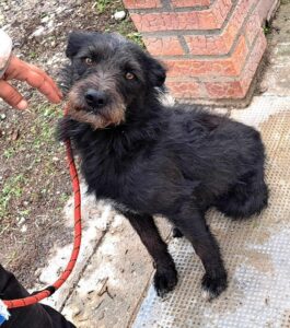 Neo was found outside the shelter gates. Perhaps he could hear the other dogs or smell food – he was certainly very hungry. There’s a possibility the tips of his ears were trimmed, possible as a puppy, but it’s not noticeable because of his hair. He is a very friendly, gentle boy with people and gets on well with the other dogs.