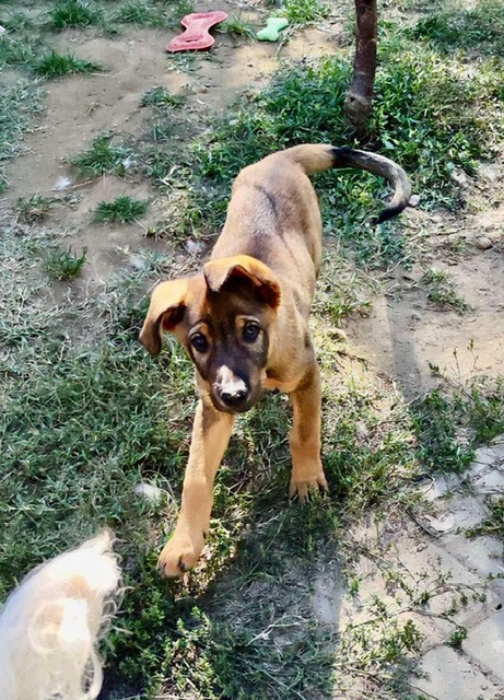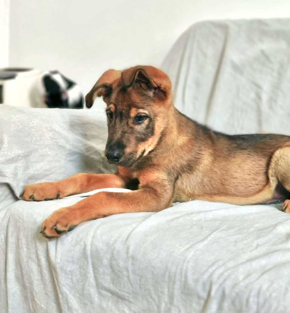 Ozzy was found abandoned in a car park. He is being fostered by a young couple. A smart dog, he has already picked up basic commands, is doing well with house training and is walking on the lead. He is being well socialised, lives with other dogs and and cats and all in all is a well rounded, sweet boy with a great temperament.