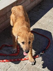 Prisca was found abandoned with her mother and 5 siblings our shelter. Her mum is medium sized and we expect Prisca to be about the same size when fully grown. She is a lovely girl who is good with people and other dogs and has made friends with the shelter cat.