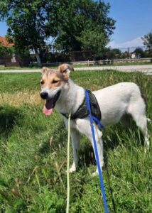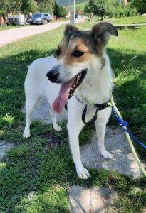 Rhea was abandoned near the local public shelter. Our rescuer offered to take her instead of her going into the shelter. She is now living in a foster home. She is a beautiful, friendly girl who is good with other dogs, loves people including visitors and walks nicely on the lead. Rhea hasn’t been cat tested but she shows a lot of interest in any she sees out walking so we are not sure about cats.