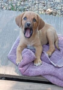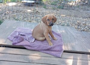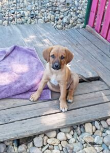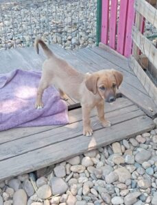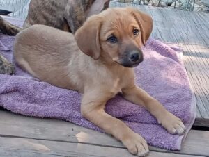 Sanna is one of 3 sisters found in the grass at the side of the road when they were just a few days old. They were initially bottle fed and were healthy and strong from the beginning. They have lived in the home of their rescuer from the start and can travel once they are four months old. All three girls are very friendly and sweet, living in a home where there are other dogs and cats.