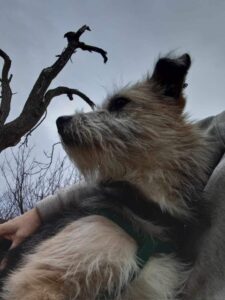 Scorgy was found with some other dogs in a factory yard. She gets along well with dogs but not with cats. She absolutely loves to cuddle and kiss people.