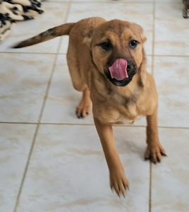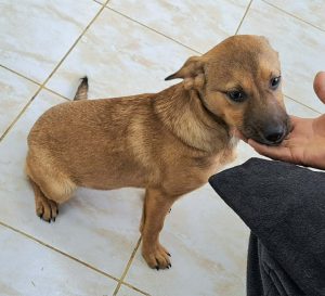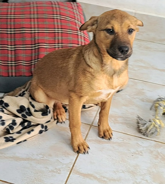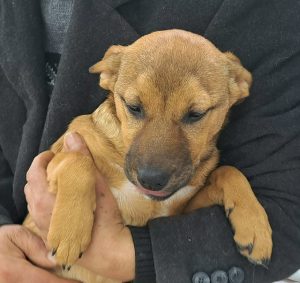 Tinca’s mum was found sheltering under a bridge in torrential rain with four puppies. Sadly another two puppies had already been swept away and drowned. Fortunately our rescuers were able to save the rest of the little family. Mother and pups were kept in foster while the puppies were small. Now they have moved to the shelter as they are old enough to find homes. Tinca is a real sweetie who loves a cuddle. Mum is medium sized and we expect the pups to be of similar size.