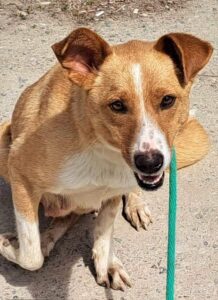 Zaria was found abandoned on the street with four puppies. Two of her puppies had fallen down a deep hole and were unable to climb out. Zaria and the other two puppies were standing by the hole waiting. Fortunately our rescuers were able to save them all. Zaria has been a lovely mum and has looked after her puppies well. Now it is her turn to be looked after so we would really like to find a loving home for this sweet friendly girl.
