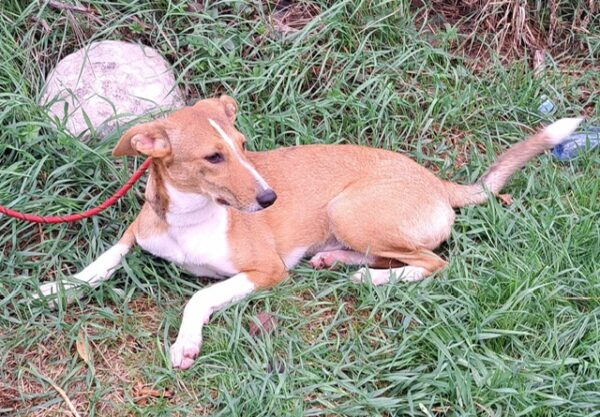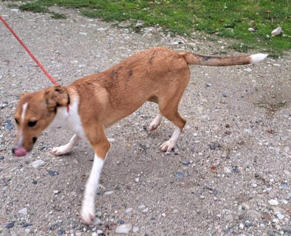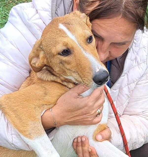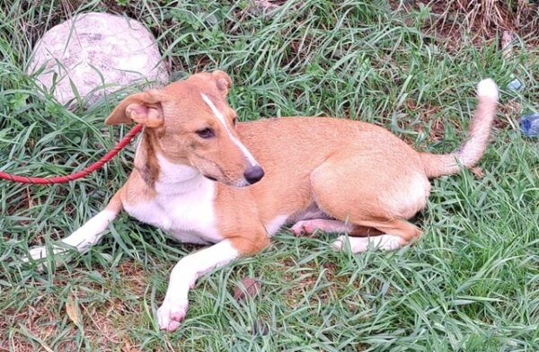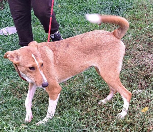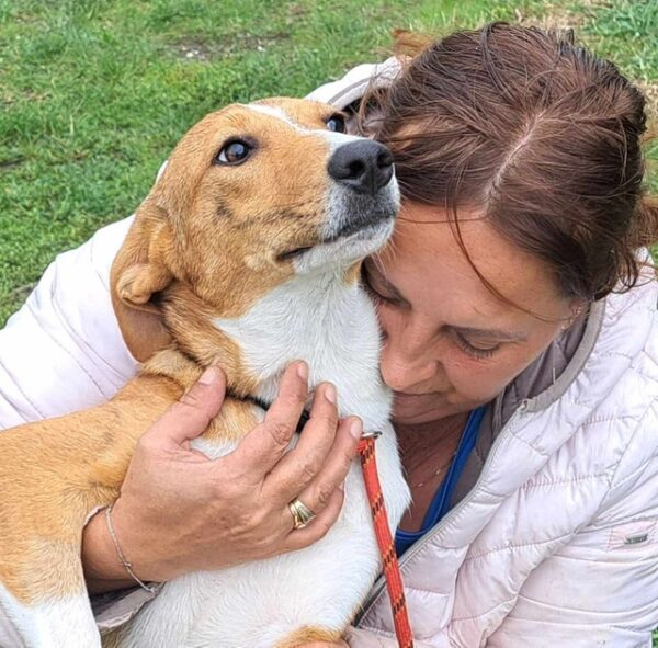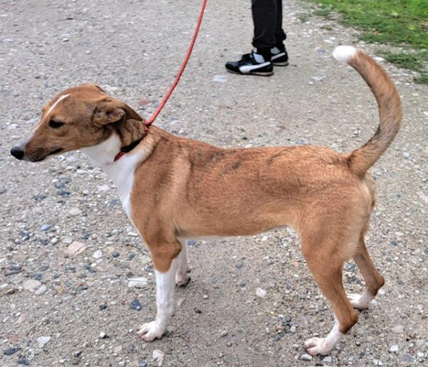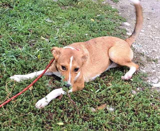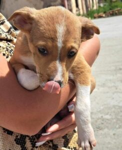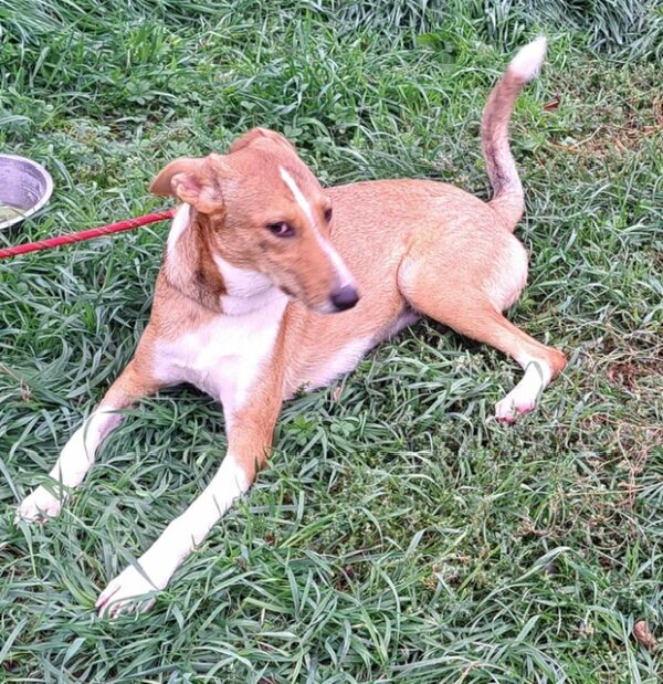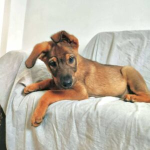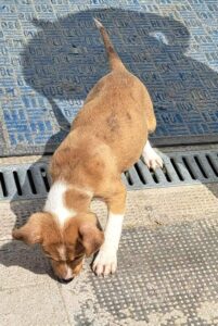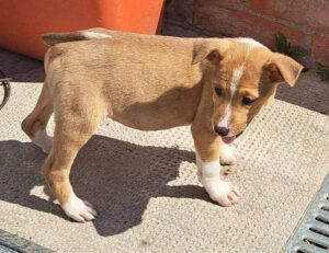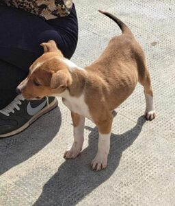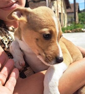A mum and four puppies were found abandoned on the street. Two of the puppies had fallen down a deep hole and were unable to climb out. Mum and the other two puppies were standing by the hole waiting. Fortunately our rescuers were able to save them all and they are ready to find lovely homes. Mum is medium sized and we expect the puppies to be similar. Zorica is a sweet, curious, playful girl – a typical friendly pup who loves a cuddle. Although she is a mixed breed we wonder if she has some smooth haired podengo in her background.